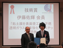 9月24日(水)から27日(土)まで福島市で開催された、第58回粘土科学討論会において、株式会社宮城化成 伊藤佑輝会員が、業績名「粘土膜を表面塗工した不燃透明ガラス繊維強化プラスチックの開発」で、平成26年度日本粘土学会【技術賞】を受賞しました。